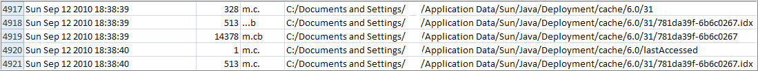 The picture below shows the next entries in the timeline which involve the Java deployment cache folder.