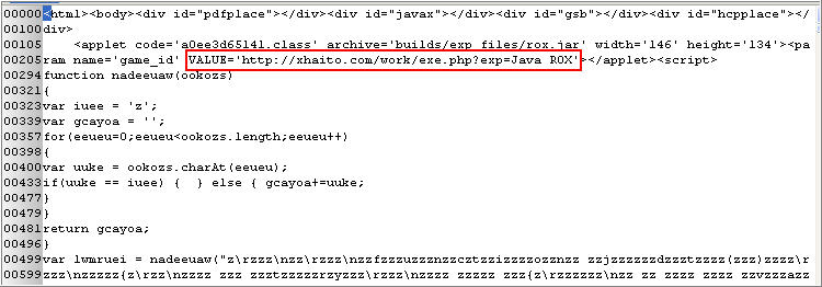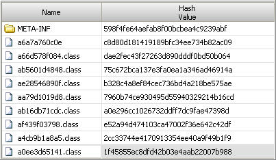 The 781da39f-6b6c0267.idx file provided valuable information including a jar file being referenced from a domain that is hosting an exploit pack and the Hiloti Trojan. The 781da39f-6b6c0267 file was the jar file downloaded from this domain. The content of this file contained eight class files.